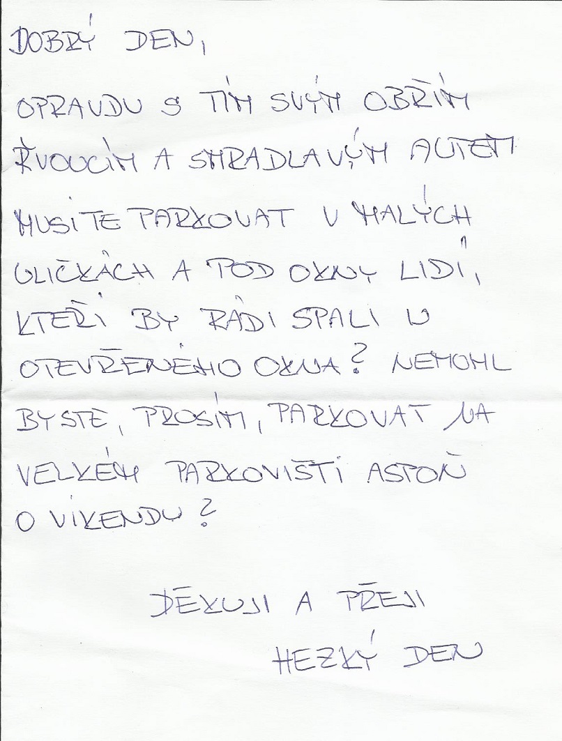DCharger (456):to jsi měl dát do humoru, nevím proč bys měl parkovat někde jinde, spíš si dávej pozor aby ti s tím někdo něco neudělal456. Liebesbrief 25. 06. 2017 - 15:01