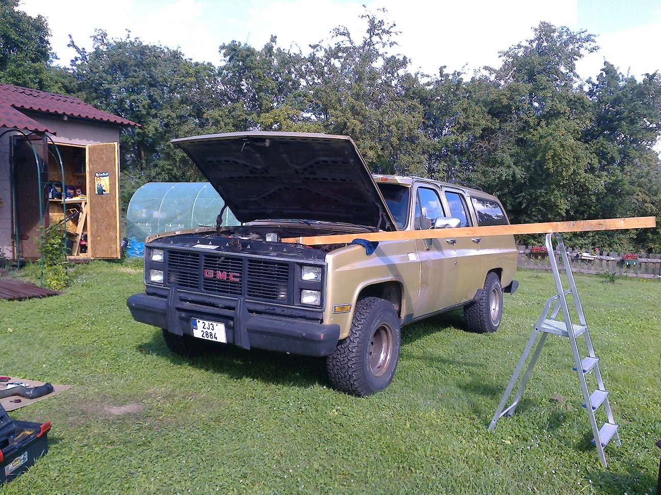 petrklm (513): ...a vlastne nejvic mi pomohl jeden z predchozich vlastniku Suburbana tim, ze uz kdysi vyhodil A/C pumpu, a privaril na naraznik plosinu pod navijak, na ktery se krasne stoji :)Go Fast... or Go Home!