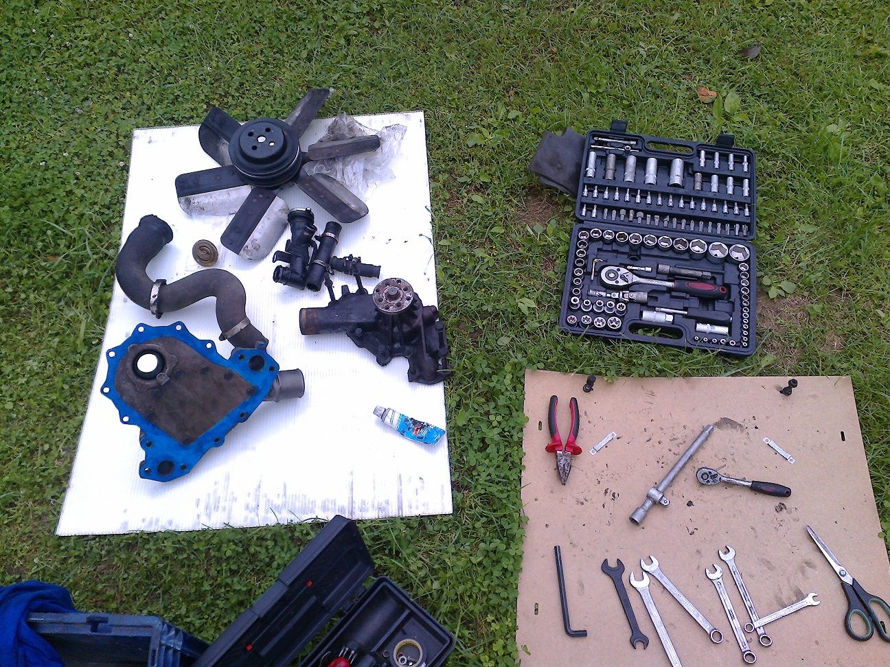 Tak vodni pumpa vymenena. Tvl, dva dny nepretrzity rasoviny. Kdo uz jednou menil pumpu na 6.2D vi, o cem mluvim. Vzdycky jsem chtel bejt ''mekenyk'' a jsem rad ze nejsem. Kdo se vrta v autech pravidelne, nebo se tim zivi, zaslouzi si pomnik.Go Fast... or Go Home!