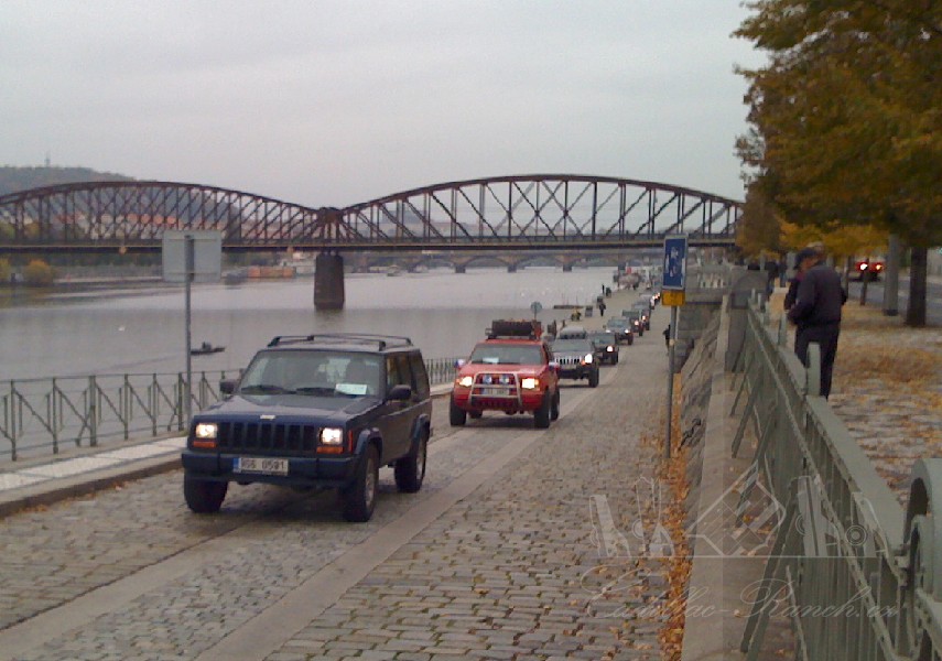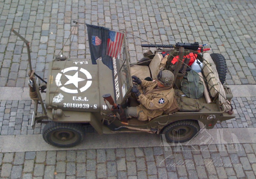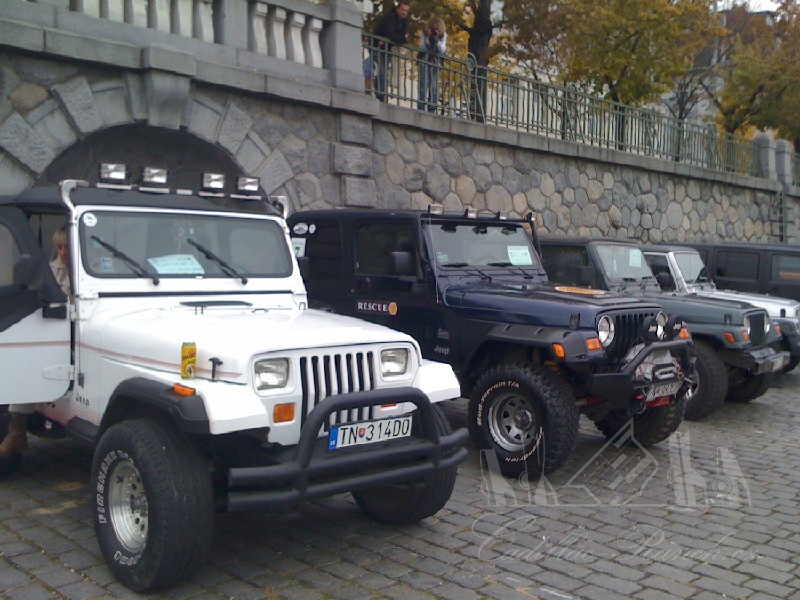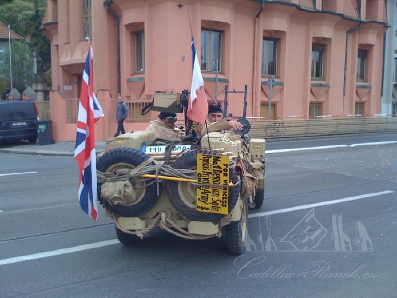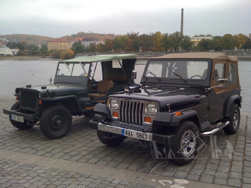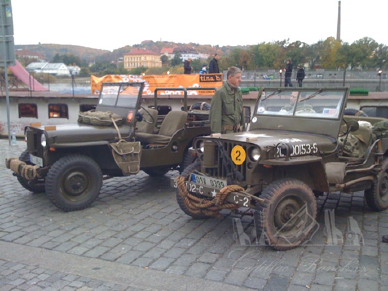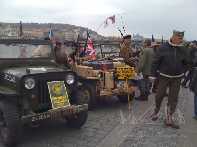 Každopádně to byl jeden z důvodů proč se Cadillaci vydali juknout na oslavy společnosti Jeep. Jeep se zapsal do automobilové historie tučným písmem a stejně tučné byly i oslavy začínající v Praze na náplavce u Palackého mostu. Sjelo se zde 110 Jeepů. Početná byla skupina původních vyznavačů armádních Jeepů, tj. Jeep Willys MB. Kulomety a uniformy byly povinnou součástí všech, kteří přijeli v nebo na těchto veteránech. Švanda Dudák tu sice nebyl, ale dudy zde byly slyšet docela zřetelně. Kvílely a kvílely… nebo mečely? Každopádně se každé takové vystoupení setkalo s bouřlivým potleskem. Ve 12 hodin začal hon na lišku. Že by přijel generál Erwin Rommel? Ale ne! Jen zde byl po zuby ozbrojený zástupce Jeep Willys MB v pouštní úpravě. Kolona vyrazila a tím oslavy pro Cadillaky skončily. Pro ostatní oslavy začínaly a pokračují až do neděle.