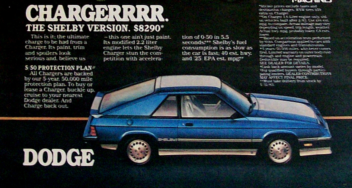 … začínají nám úžasná osmdesátá léta a Charger pro rok 1983 se má na stát předvojem nového spojení Dodge-Shelby.