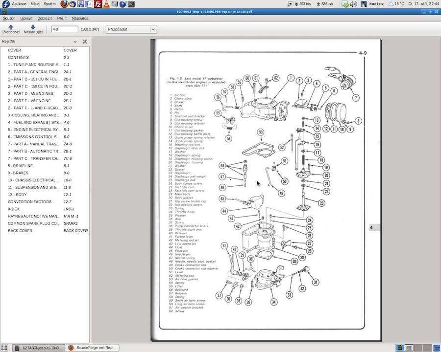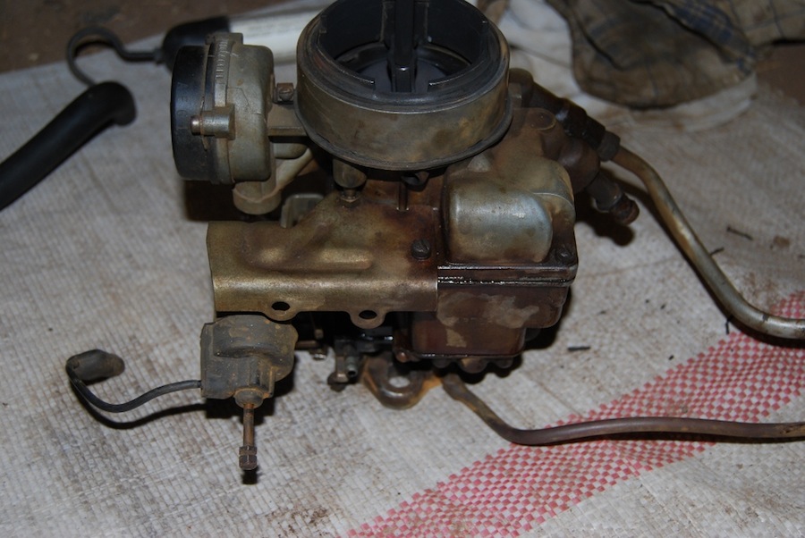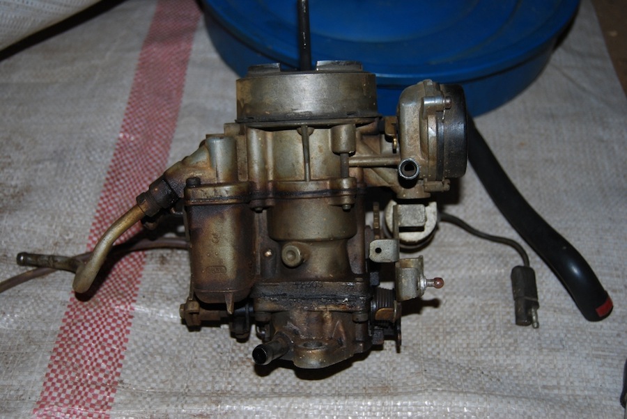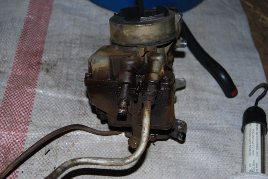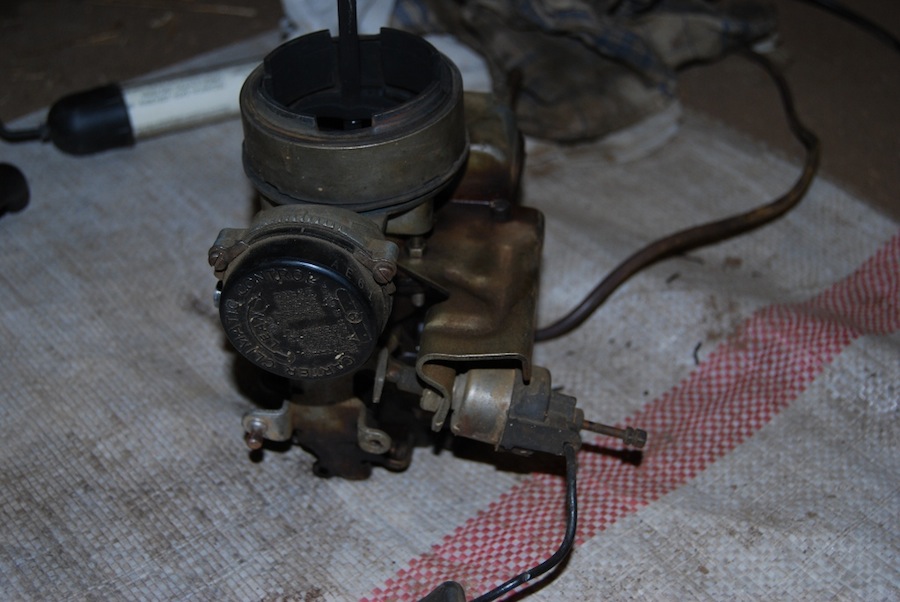 Karburátor jsem si musel nafotit, protože v Jeepech se používá více karburátorů, tak abych si našel schéma pro ten svůj typ. Mám tam Carter YF. Tak jsem karburátor sundal a dneska rozebral a vyčistil. Pro čištění jsem použil lihový čistič a pěkně jsem to uvnitř vše štětečkem a hadříkem vyčistil. Trysku jsem vymontoval a profoukl. Snažil jsem se umýt i komoru včetně klapek, která byla od spalin pěkně černá Uvnitř jsem raději na další věci nešahal a spíš jsem to jen pořádně propláchnul. Taky jsem to čistil i zvenku, ale dneska jsem neměl foťák, tak jsou fotky jen ze včerejška, jak jsem to sundal špinavé.