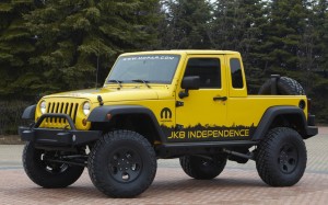 Potřebujete vozit náklad a využívat i dobrých terénních vlastností auta? Pořiďte si Jeep Wrangler Unlimited a přestavte si ho na pick-up. Tuto možnost Vám nabízí Mopar se svým konverzním kitem JK-8 Independence. Získáte tak ložnou plochu o délce 127 cm a šířce mezi podběhy přes 111 cm.
