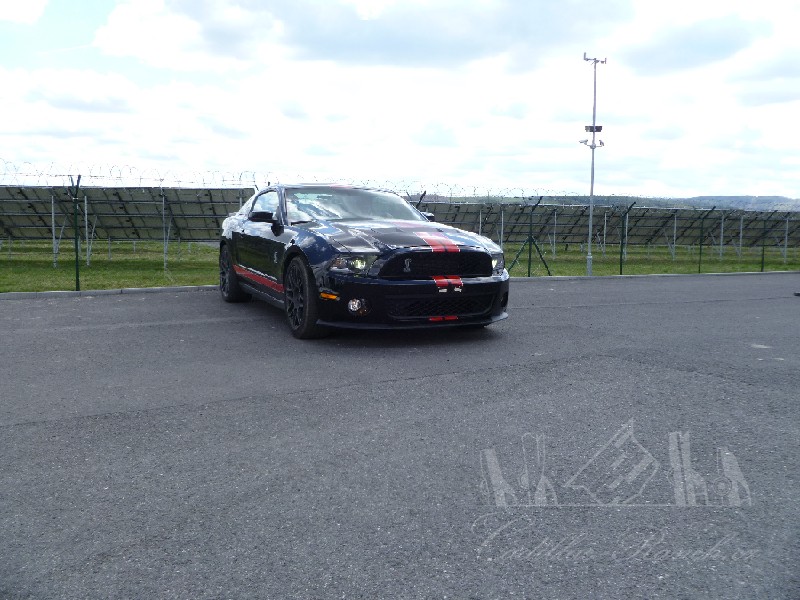 Jedeme na polygon. Mám jen 3 km na rychlostní test, kdy můžeme z auta vyždímat co to dá! Zastávka na Pit Lane, vyřazení, nadechnutí, soustředění! 3, 2, 1 – start! S Mustangem těch 500 koní slušně cvičí, akceleruje svižně i ve vztahu k hmotnosti vozu (něco přes 2 tuny). Přijde chvíle, kdy potřebuješ rychle zařadit 5-ku! Kurva!!! Zařadili jsme špatně! Netrefili jsme se! Skoro jsme zařadili zpátečku, která je hned vedle! Taky blbej nápad, klucí americký! No dobrá, máme ještě jeden a poslední pokus. Otáčíme a vyrážíme letmo z dvojky. Pružnost motoru je dobrá, takže k pětce se dostávám relativně rychle a teď to přijde… povedlo se! Otáčky kolem 5 000, rychlost kolem 240 km/h. Projevuje se hmotnost vozu… stabilita v přímém směru není úplně nejlepší! Mustang se divně chvěje, ale snad to můžem připsat ne zrovna ideálnímu povrchu polygonu! Nicméně čekali bychom lepší parametry odskoku u tlumičů!