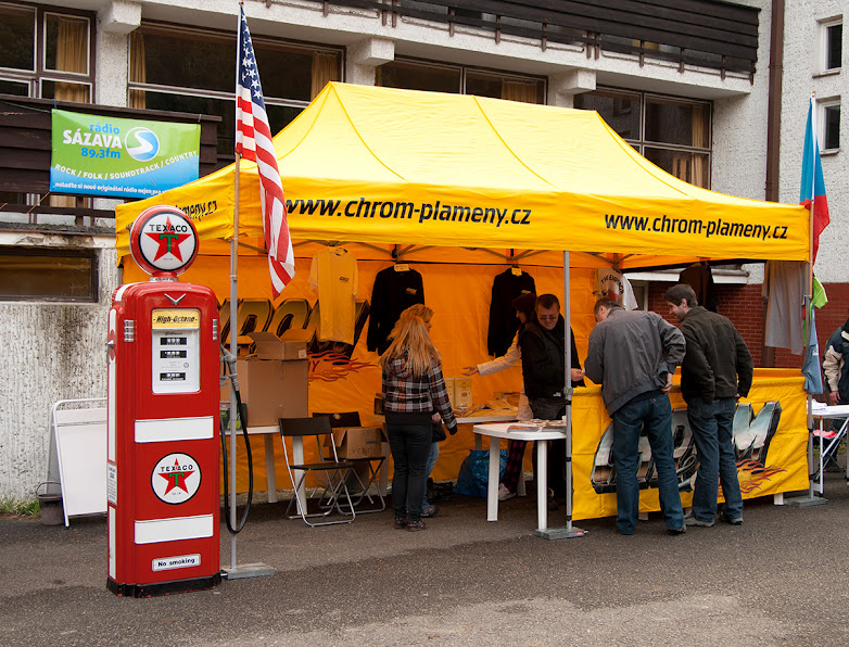 První velké překvapení bylo, když jsme přijížděli k areálu v Jizbici a příjezdová komunikace byla v celé délce lemovaná auty návštěvníků. Sešel se jich věru důstojný počet. Areál byl už naplněný k prasknutí, ale všechna auta se nakonec nějak vešla a věru bylo na co koukat. Nechci nikoho vyzvedávat, každému se líbí něco jiného, ale je radost vidět ta krásná auta, která udržují živou dobu, kdy motorismus byl ještě zábavou nesešněrovanou pekelnými cenami ropy a nesmyslnými regulacemi. A protože auta jsou pro lidi, tak se okolo nich motají nadšenci, nikdo se nemračí, nikdo nikoho neodmítne, společně se řeší nejrůznější problémy a všude vládne skvělá atmosféra lidí naladěných na stejnou notu, i když někdo má rád sporťáky, jiný jeepy a další se nejraději pohupuje v klasické staré americe.