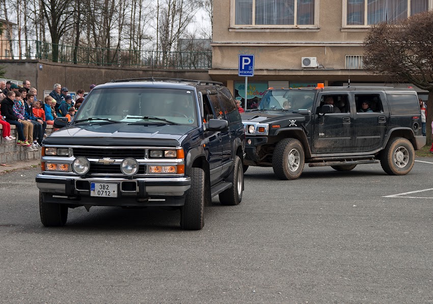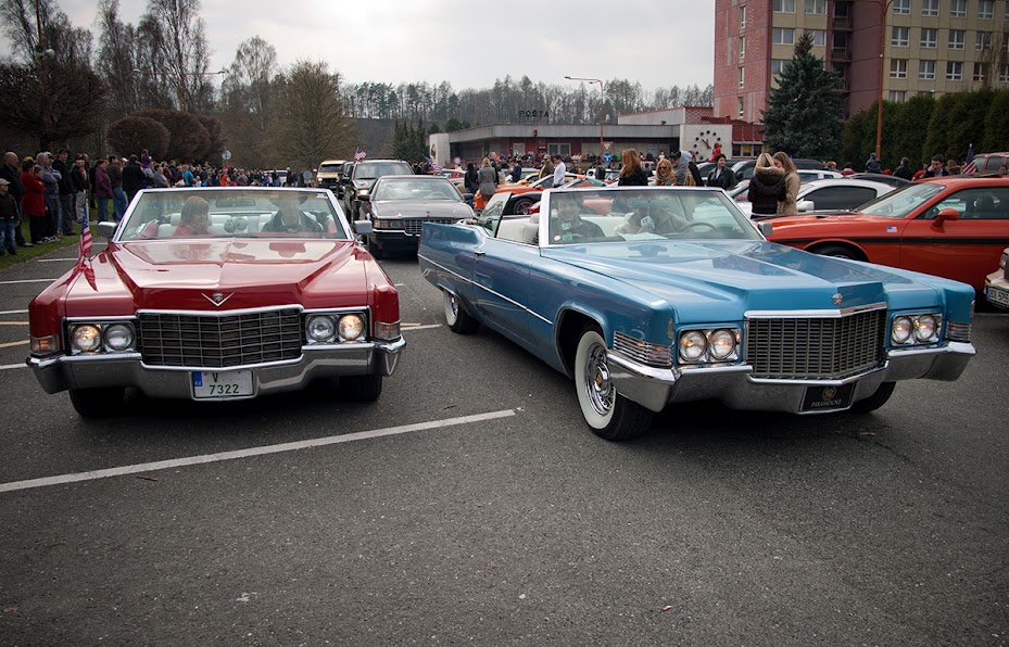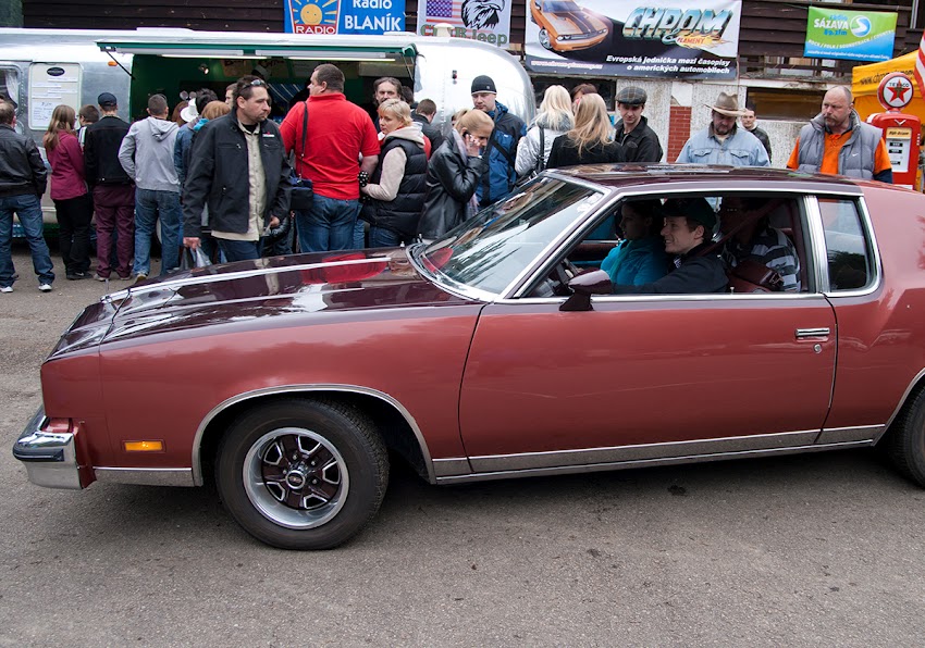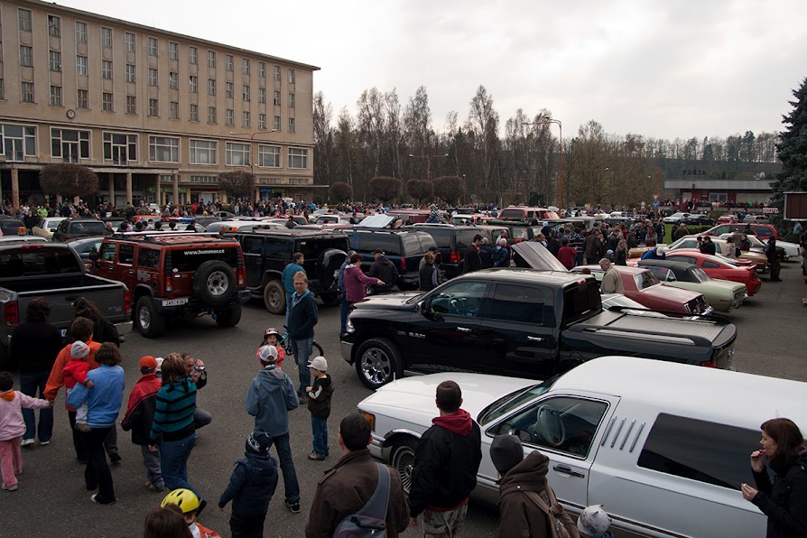Po vyhlášení výsledků soutěže přišel čas na spanilou jízdu. Trochu se zdržela (jako vždycky se našlo pár jedinců, kteří organizaci zkomplikují – lidi poslouchejte příště pozorněji pokyny!), ale když jsme na ni vyrazili, tak stála za to. Ameriky vpředu po obzor, vzadu po obzor, to se musí zažít. Končili jsme na náměstí ve Zruči nad Sázavou a jak je z fotografií vidět, i tady vzbudila auta obrovský zájem návštěvníků. Do kempu jsme se už nevraceli, takže ze Zruče jsme se už rozloučili a pak jsme jen na silnicích potkávali auta, která se postupně rozjížděla. Kdo se vracel do kempu, zřejmě si i večer pěkně užil…
