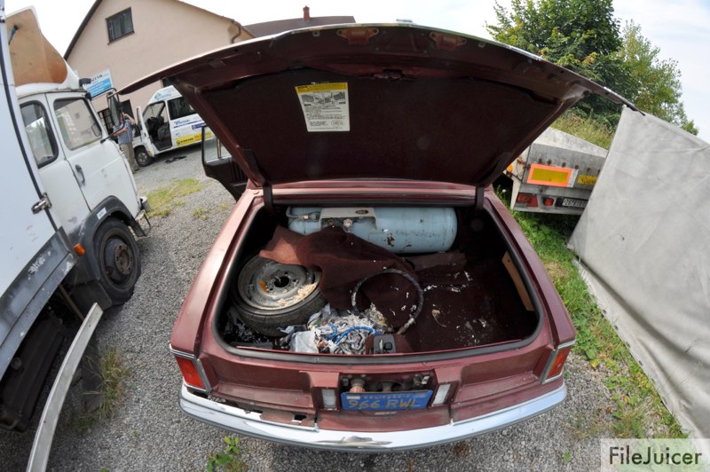 Ještě než jsme se pustili do demontáže, nechali jsme nafotit nálezový stav, který zejména dokumentoval bizarní plynoinstalaci, která byla v Cadillacu namontovaná ještě v Americe. Perličkou je, že nám prodejce dodal i originální dokumentaci k plynoinstalaci.