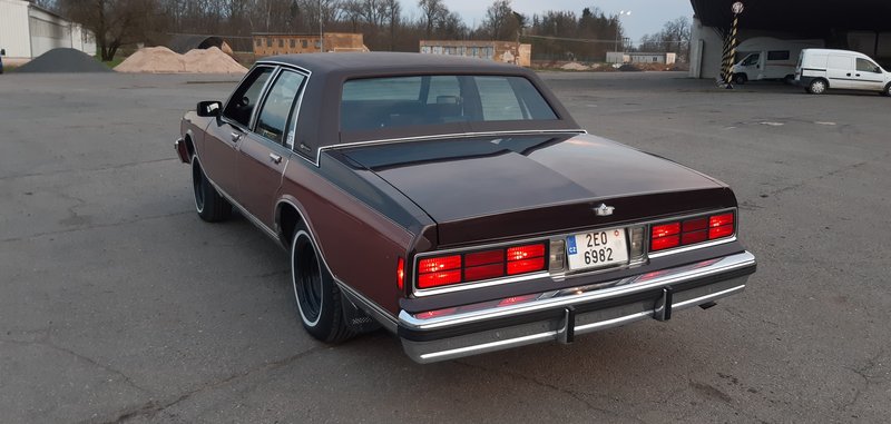 trewis (14584): Sakra to je nadherny auto! Ta barva, ten zadek... Krasa! Ja jsem na tyhle hranaty Caprice ujetej... Vzdycky jsem nejvic fotil na srazech Romanovo ex modryho sedana.GMC Vandura2500 1987 - 5,7 L